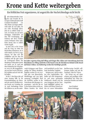 gerne hätten wir in diesem Jahr die Schützenfest-Saison eröffnet. Unser Schützenverein besteht seit 1863 und es gab in dieser langen Zeit mehrfach Jahre in denen nicht gefeiert werden konnte.
