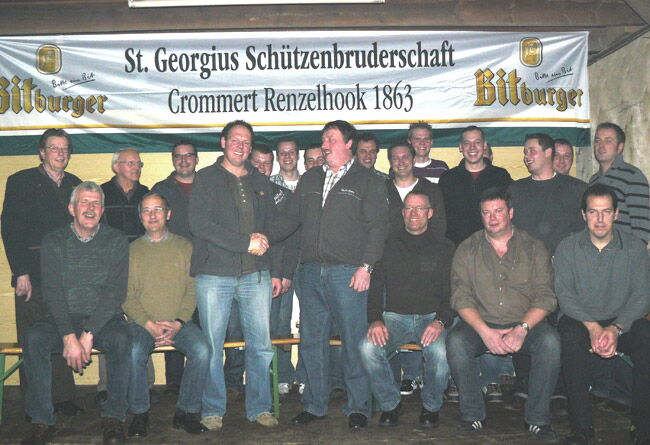 Am Samstag, den 8.Jan. 2011 fand traditionell die Generalversammlung der St. Georgius Schützenbruderschaft Crommert-Renzelhook in den Räumen der Schreinerei Rottstegge statt. Der Präsident Stefan van der Linde konnte ein erfreuliche Zahl von 73 Mitglieder begrüßen. Nach der Verlesung des Jahresberichts und des positiven Kassenberichts folgte die Planung der Festfolge zum 150-jährigen Jubiläum 2013.