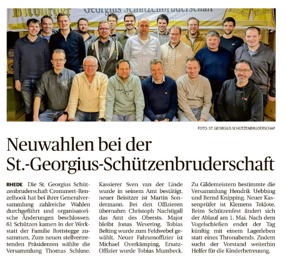 Am Samstag, den 10.01.2026 findet Abends in der Schreinerei Rottstegge die Generalversammlung der Georgiusschütznbruderschaft statt.